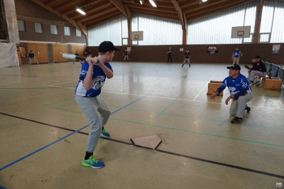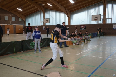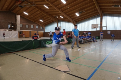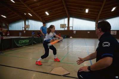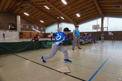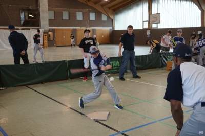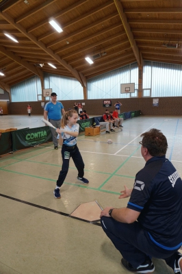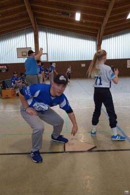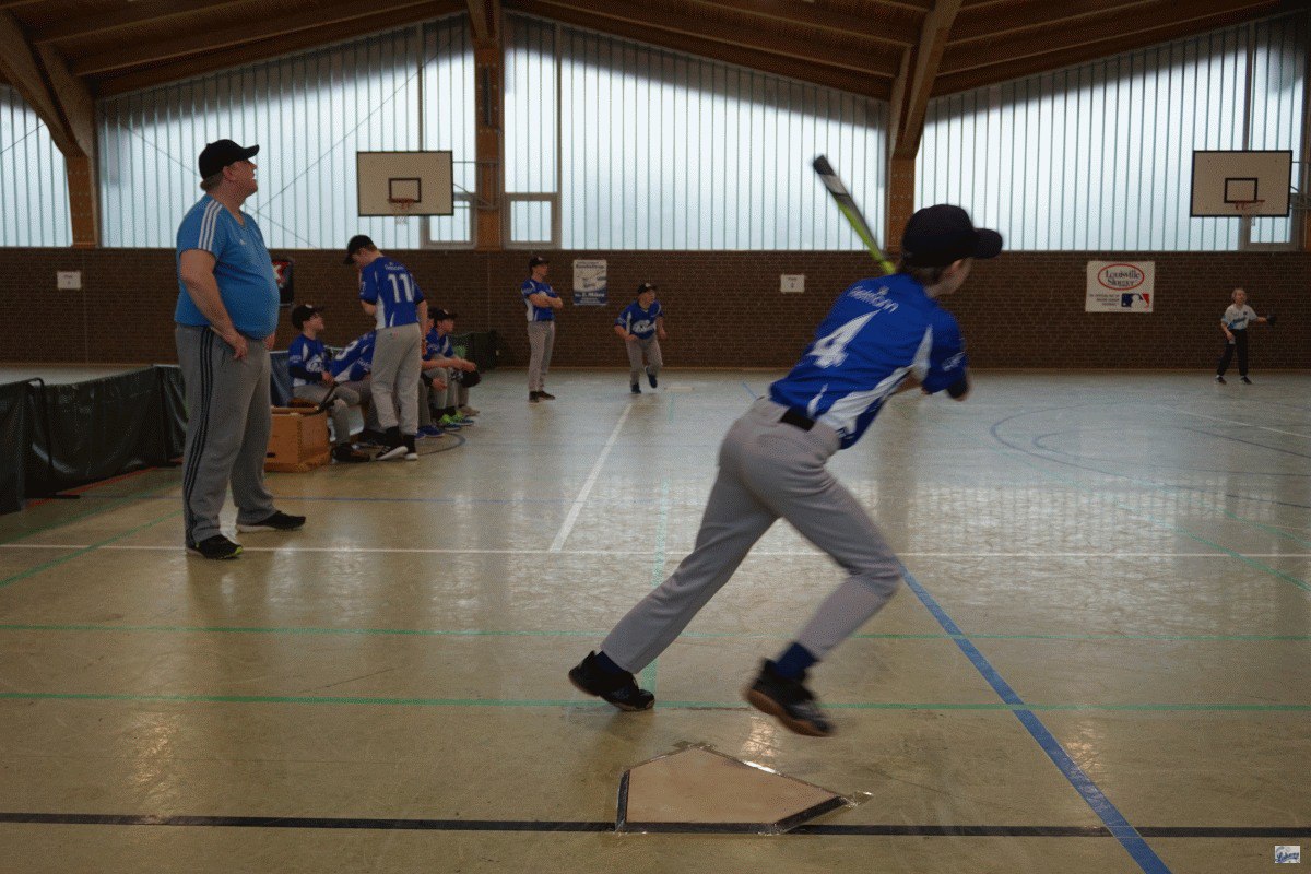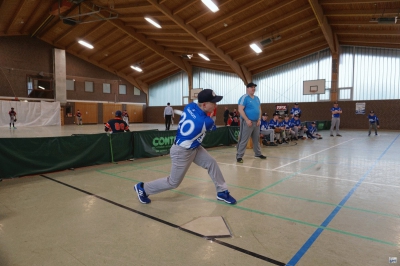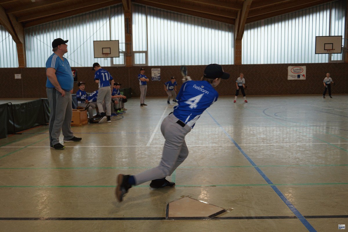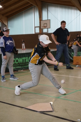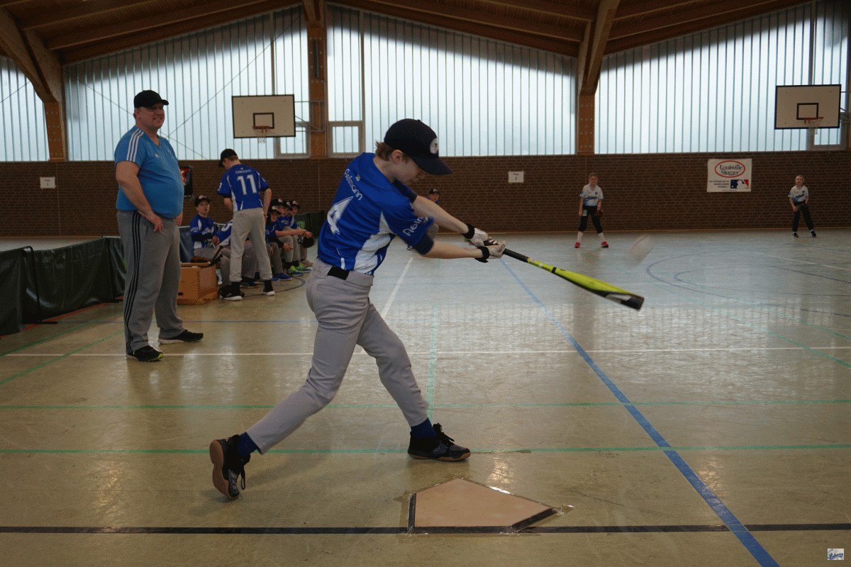 Die Folgepartie gegen die mit Auswahlspielern gespickte BBBA hätte also bereits das Ausscheiden bedeuten können. Doch die Hausherren waren plötzlich wie verwandelt und fegten die zuvor als nahezu unschlagbar eingeschätzten Elite-Hauptstädter mit 10:2 vom Feld. Ausgerechnet Viertklässler Lenny (9 J.), unserem Jüngsten, gelang dabei gegen die BBBA-Cracks ein Grand Slam Homerun zum zwischenzeitlichen 4:0! Nach einem weiteren Sieg gegen die Kiel Seahawks, die mit einem reinen Mädchen-Team angetreten waren, war die Zwischenrunde erreicht. Die BBBA hingegen verpasste nach einer zweiten Niederlage (gegen die Roadrunners) sensationell das Weiterkommen.