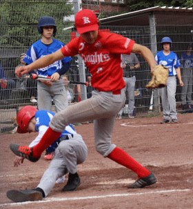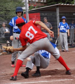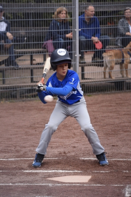 Leadoff hitter Henri war es, der auf den ersten schlagbaren Kieler Pitch des Tages schwang und mit einem Grounder das Base erreichte. Großer Jubel im Dugout. Und natürlich bei den zahlreichen Eltern, die im ersten Halbinning etwas still geworden waren, da die Seahawks sofort drei Runs vorgelegt hatten.